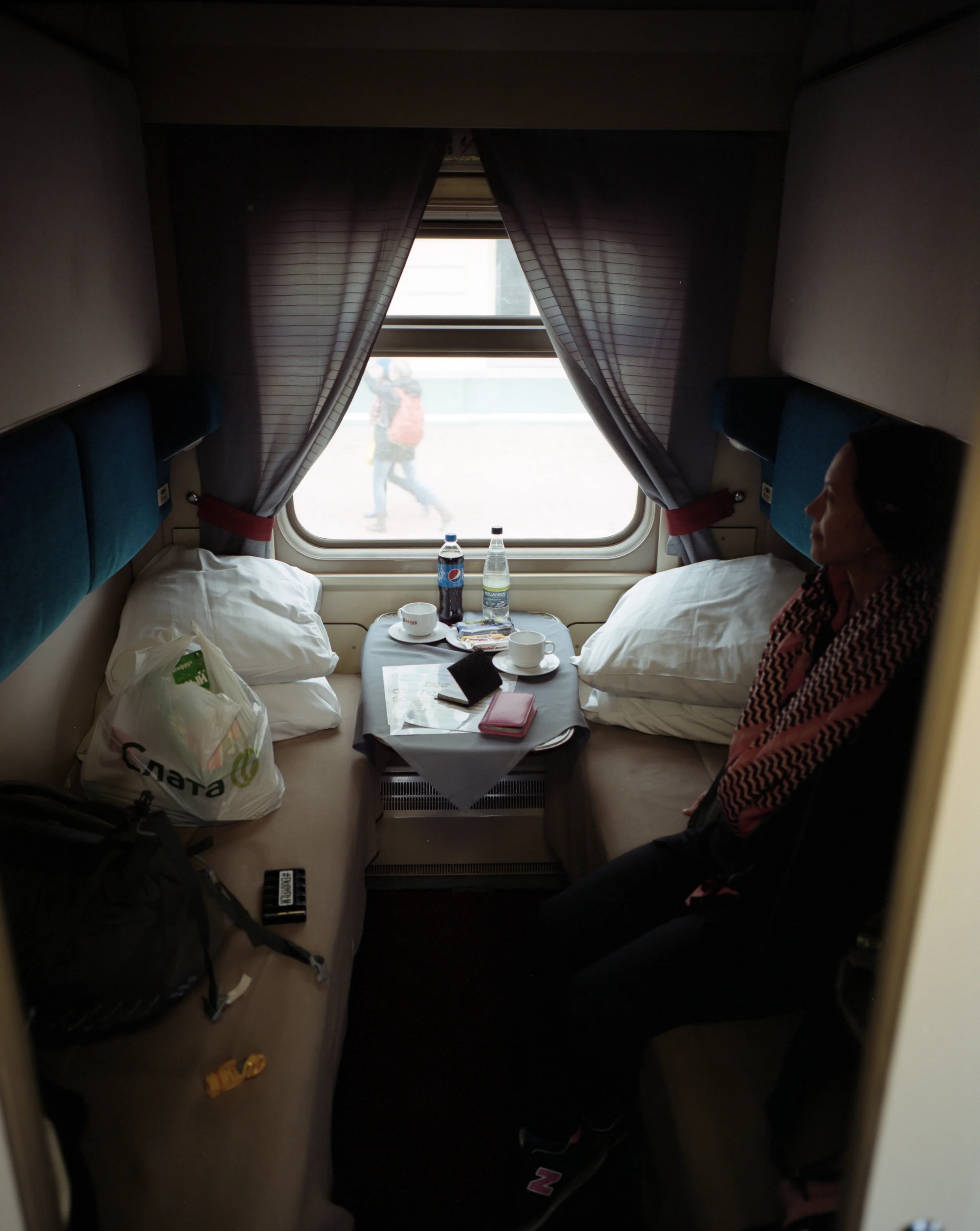 Most of the station stops were short, between five and 10 minutes. The longer ones allowed us to get off the train to take photos and find some food, usually noodles or oatmeal, food that can be prepared with hot water. At two stations, Mariinsk and Vladimir, we changed engines. Most of the stations in Siberia had snow, much like most of the ride.